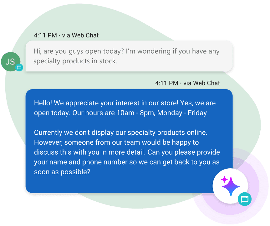 • Customize responses with business-specific knowledge to enhance the chat widget’s ability to provide accurate and relevant answers.
